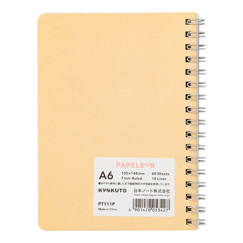 #キョクトウ・アソシエイツ ノート パペルール・Wリングノート A6 ピンク PT111P #キョクトウ・アソシエイツ ノート パペルール・Wリングノート A6 ピンク PT111P