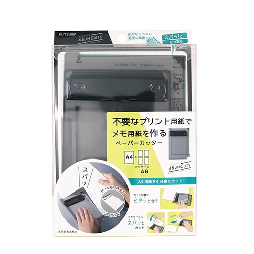 不要なプリント用紙でメモ用紙を作るペーパーカッター ハサミ、カッター、折り目も不要でA4用紙をA6サイズ4枚分にカットできます 本体を紙の上でスライドするだけでカット位置が合う目印・ガイド付 カットした紙を付属のクリップに挟んでメモパッドとして使えます【検索ハッシュタグ】#クツワ#kutsuwa#クリップボード#ペーパーカッター#事務用品