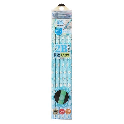 暗闇で光る蓄光デザイン、派手過ぎず学校に持っていきやすい六角軸、2B黒芯の鉛筆です。両手用プニュグリップ1コ付。10本入、名前欄付。【検索ハッシュタグ】#鉛筆#光る#蓄光#持ち方#書き方#新入学#学用品#クツワ