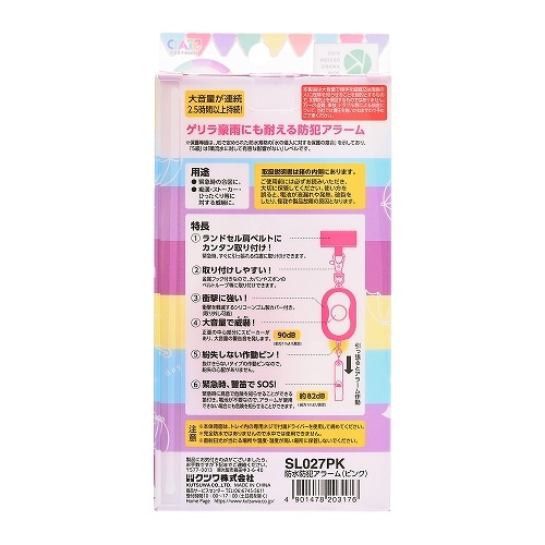 高レベルの防水性能(防水保護等級5級)を持った防犯アラームです。音量90dB以上が2.5時間以上持続。衝撃に強いシリコーンカバー付。ランドセルベルト・笛・ミニドライバー付【検索ハッシュタグ】#アラーム#ブザー#防犯#防災#通学#通塾#学用品#新入学#クツワ