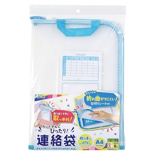 ランドセルから取り出しやすい取っ手付の連絡袋プリントが折れ曲がりにくい仕切りシート付丈夫なメッシュ生地を使用していますじかんわりカード付【検索ハッシュタグ】#連絡袋#プリント#ファイル#持ち帰り#学用品#通学#クツワ