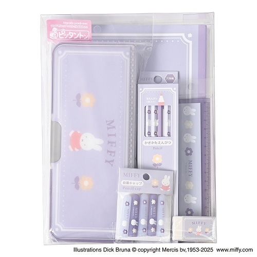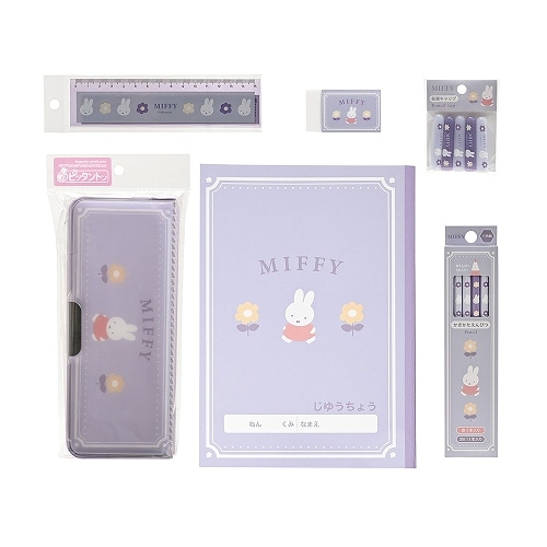 ミッフィーとお花をモチーフに人気の色、青っぽい紫を特長とした上品で可愛らしい文具シリーズです【検索ハッシュタグ】#ミッフィー#文具セット#ギフトセット#入学祝#学用品#学童文具#クツワ