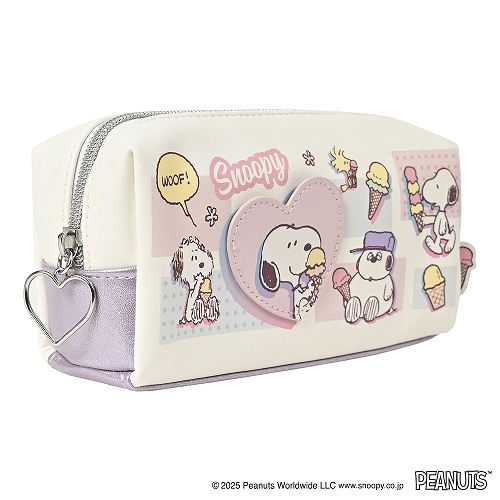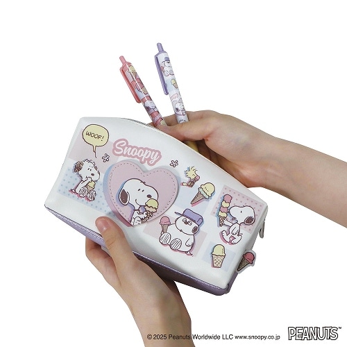 スヌーピーのきょうだいたちが学校帰りにアイスクリームを食べているシーンをイメージした文具シリーズ。わいわいがやがや楽しい雰囲気を表現したデザインです。【検索ハッシュタグ】#ペンケース#スヌーピー#筆箱#学用品#学童文具#クツワ