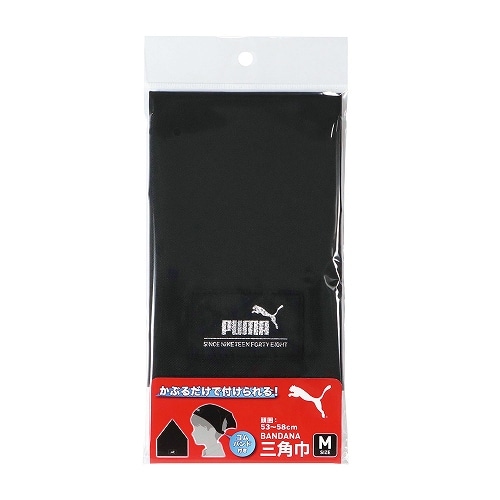 給食の時間や家庭科の授業で使える、簡単に着脱できるゴムバンド付の三角巾です。対応サイズ:頭囲53~58cm【検索ハッシュタグ】#PUMA#プーマ#エプロン#給食#家庭科#調理#三角巾#学用品#クツワ