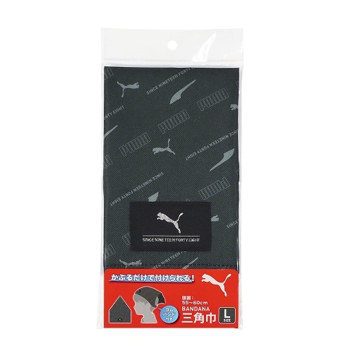 給食の時間や家庭科の授業で使える、簡単に着脱できるゴムバンド付の三角巾です。対応サイズ:頭囲55~60cm【検索ハッシュタグ】#PUMA#プーマ#エプロン#給食#家庭科#調理#三角巾#学用品#クツワ