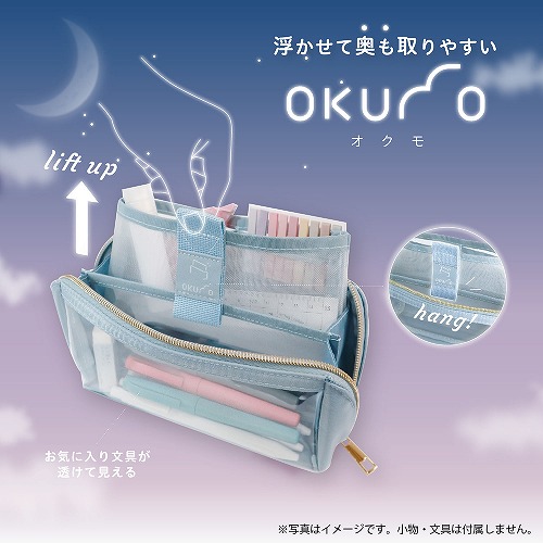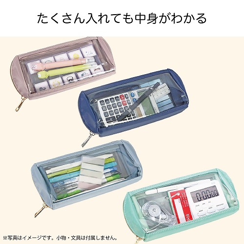 透明ペンケースの、手前のものは見やすいけれど奥のものは見えづらい、消しゴムなどの小物が埋もれてしまう、というちょっとした不便を解決しました。ポケットのフックを仕切りに引っ掛けて、浮かせて固定できることで、奥の小物や筆記具も見える位置に固定出来ます。手前も奥もどちらも取りやすい新設計のペンケースです。【検索ハッシュタグ】#ペンケース,クツワ#透明#推し活#クリアペンケース#横型#メイクポーチ#くすみ