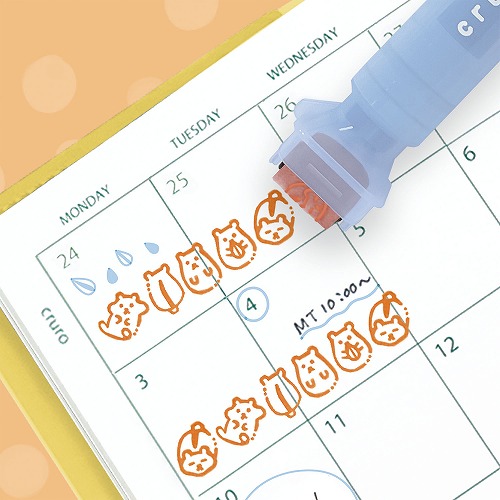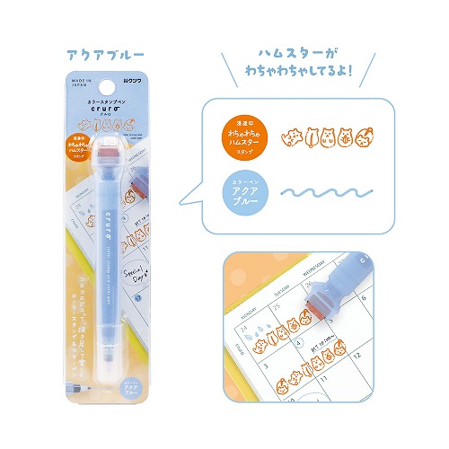 カラーペン一体型のローラースタンプ、連続して押印できる回転式の浸透印(40~50m印字可能)です。コロコロと転がすと可愛い動物がスタンプされます。ペンケースに入れやすいペンタイプ。スタンプに合わせて描き足しを楽しめる、ペン先0.5mmの水性カラーペン。スタンプ柄:わちゃわちゃハムスター(スタンプ色:オレンジ)/カラーペン色:アクアブルー【検索ハッシュタグ】#スタンプ#ローラースタンプ#水性ペン#デコ#ハムスター#クルロ#クツワ