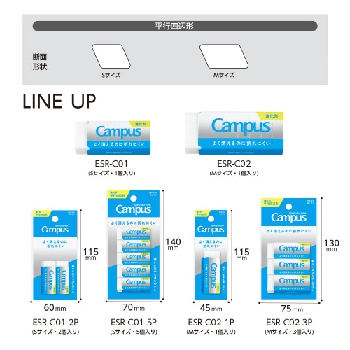 ●Campusはノート中心のブランドから、学生の夢やチャレンジを応援するブランドへ前進します。●よく消えるのに折れにくい消しゴムです。●コクヨ独自のハイブリッド製法で、よく消えるようにするための吸着成分と折れにくくするための骨格成分を絶妙なバランスで一体化させました。●持ち方や狙いやすさに応じた形状デザインです。●こまめにちぎれるミシン目の入ったスリーブ付きです。【検索ハッシュタグ】#メモ勉#ちょこ勉#モチ勉#とじ勉#ベース文具#キャンパス#Campus#まなびかた#まなび方#まなびレシピ#勉強法#学習法