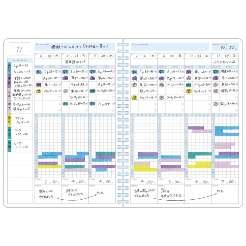 ●Campusはノート中心のブランドから、学生の夢やチャレンジを応援するブランドへ前進します。●日々の勉強計画を立てられるソフトリングノートタイプのスタディプランナーです●サクッと勉強計画を立てたい人向けのTODO管理がメインの罫線です。●見開き1週間で、やるべきことを計画・実行できます。●週単位・一日単位でやるべきこととやったことを簡単に管理できるほか、大まかに勉強時間のカウントも出来て、モチベーションアップにつながります●コクヨ独自開発の“新感覚やわらかリング”を採用したソフトリングのノートです●折り返せるので狭い場所にも置けて、TODOを確認しながら勉強出来ます【検索ハッシュタグ】#メモ勉#ちょこ勉#モチ勉#とじ勉#ベース文具#キャンパス#Campus#まなびかた#まなび方#まなびレシピ#勉強法#学習法#スタプラ#スタディプランナー#ソフトリング#TODO#TODO管理#勉強計画#KOKUYO#コクヨ