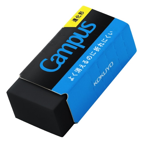 ・Campusはノート中心のブランドから、学生の夢やチャレンジを応援するブランドへ前進します・よく消えるのに折れにくい消しゴムです・コクヨ独自のハイブリッド製法で、よく消えるようにするための吸着成分と折れにくくするための骨格成分を絶妙なバランスで一体化させました・持ち方や狙いやすさに応じた形状デザインです・こまめにちぎれるミシン目の入ったスリーブ付きです