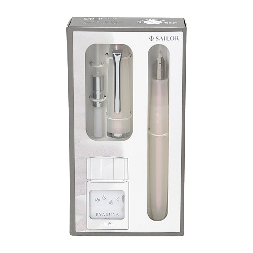 これ一つですぐにはじめられる万年筆とコンバーター、ミニボトルインクのセットです。時間の経過や書く紙によって色彩が変わる、濃淡や滲みにも違う色が垣間見える不思議なゆらめくインクをセットしています。