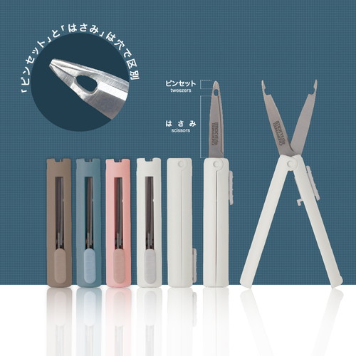 刃先がピンセットになっているはさみ。「つまむ」「切る」がコレ1つ!シール貼りはコラージュなどの細かな作業に。シール帳の作成やシールの交換時などにおすすめ!