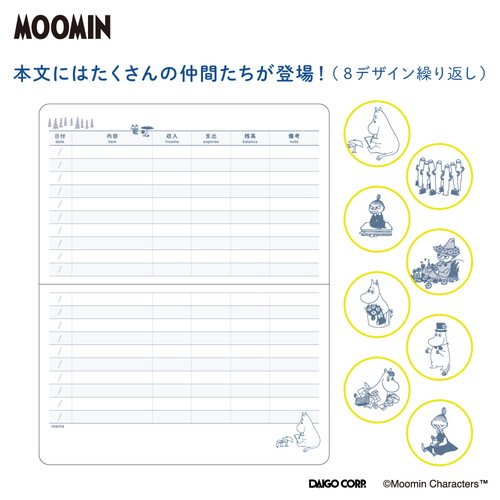 シンプルなレイアウトで使いやすい、可愛いムーミンデザインのキャッシュブック