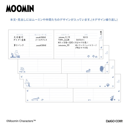 増えるID・パスワードの管理に、備える一冊。かわいいムーミンデザインのパスワードブック。