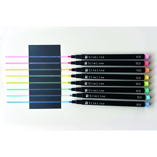 極細2.4㎜のペン先で、小さな文字、細い罫線にも細くきれいな線が引けます。裏移りの少ない水性顔料インキを採用。白い紙にはもちろん、黒い紙にもふわっと浮かび上がるように発色パステルカラーのラインマーカーです。ポーチに入れてもかさばりにくいスリム軸で、持ち運びにも便利です。