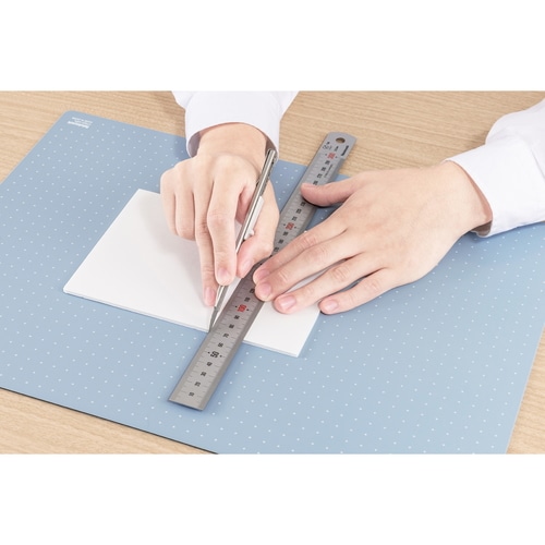 インテリアに馴染むミニマルデザイン。直角がわかりやすい格子罫線と、邪魔にならないドット罫線のいいとこどりの「十字罫線」仕様。 環境に配慮した「オレフィン系樹脂」を使用。持ち運びの際は半分に折りたたんでコンパクトに持ち運ぶことができます。場所やシーンを選ばない落ち着いたカラーの4色展開です。クリアは半透明素材のマットのためライトテーブルなどで透き通り、スクリーントーンや切り絵などのトレース作業に使用できます。【検索ハッシュタグ】#ナカバヤシ#折りたたみカッティングマット#工作マット#折り畳みマット#裁断用マット#カッター作業用#紙細工用マット#デスク用カッティング#クラフト作業用#製図マット#折りたたみデスクマット#A3サイズマット#42cm×29.7cm#カッター台#クラフト机用