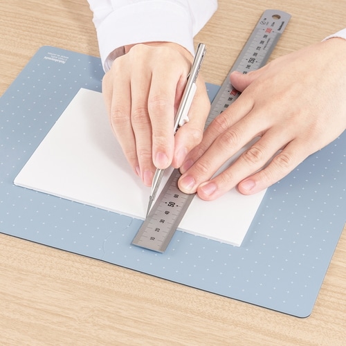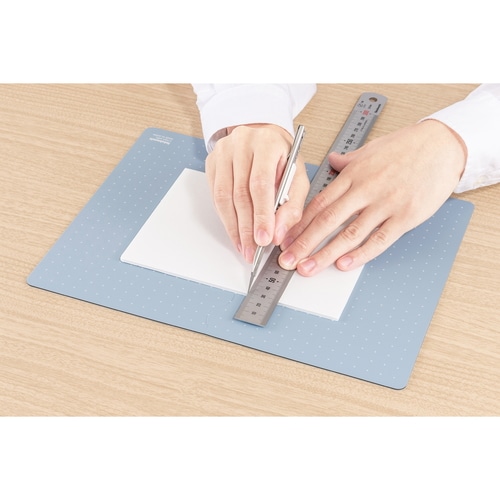 インテリアに馴染むミニマルデザイン。直角がわかりやすい格子罫線と、邪魔にならないドット罫線のいいとこどりの「十字罫線」仕様。 環境に配慮した「オレフィン系樹脂」を使用。持ち運びの際は半分に折りたたんでコンパクトに持ち運ぶことができます。場所やシーンを選ばない落ち着いたカラーの4色展開です。クリアは半透明素材のマットのためライトテーブルなどで透き通り、スクリーントーンや切り絵などのトレース作業に使用できます。【検索ハッシュタグ】#ナカバヤシ#折りたたみカッティングマット#裁断作業マット#クラフト作業デスクマット#折り畳みクラフトマット#作業机保護カッティング#デザイン作業マット#模型クラフト用#折り畳みカッター用マット#製図机用マット#A4マット#29.7cm×21cm#軽量折りたたみ式#ペーパークラフト裁断#ハンドメイド作業マット