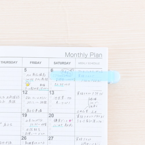 ページをめくってもクリップが自動で追従して開いたページをしっかりキープします。クリアなボディで文字が隠れず、読書や筆記の邪魔になりません。クリップ型で表紙に挟んで使用するので、なくす心配もありません。