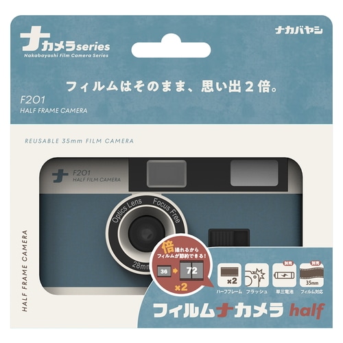 “アルバムのナカバヤシ”が提案するカメラシリーズ。通常フィルムの倍の枚数撮影可能なハーフフレームカメラ。