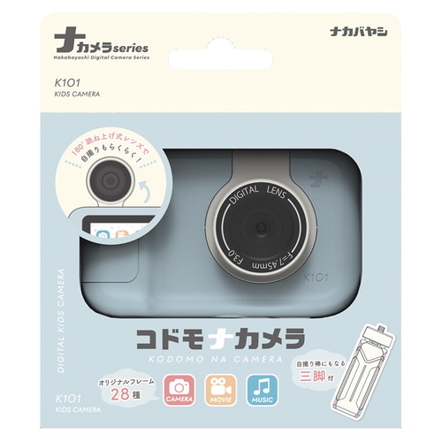 レンズ部分が反転して内カメラになるので自撮りも可能です。動画撮影もOK。2.4インチモニター付。<ご使用上の注意>直射日光の当たる場所、火の側など高温になる所に放置しないでください。汚れた場合は柔らかい布を水または薄めた中性洗剤で湿らせて軽く拭き取ってください。シンナー、ベンジン、アルコールなどは変色・劣化の原因になりますので、お使いにならないでください。長期間使用しなかった場合は、付属のケーブルで充電してからご使用ください。充電する際は、必ず付属のケーブルで充電してください。【検索ハッシュタグ】#ナカバヤシ#キッズカメラ#ブルー系#簡単操作#軽量設計#写真撮影#子ども用#入門機#持ち運び#日常記録#おもちゃ#ギフト
