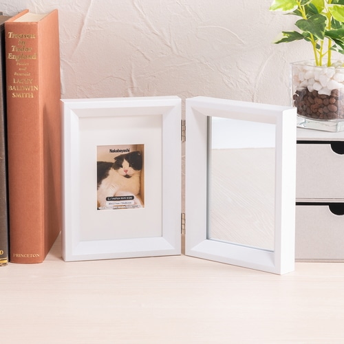 小スペースに置きやすい。機能性を兼ねた鏡付きのフォトフレームです。