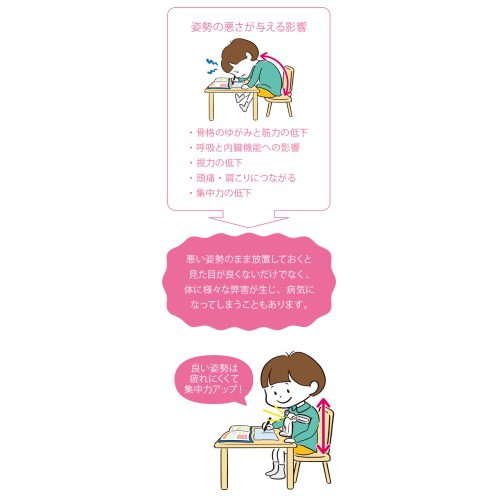 学習時の姿勢を正す姿勢キーパーです。デスクワークでの姿勢を正し、体の疲れを減らし集中力の向上を促すだけでなく、視力保護・猫背防止にも効果が期待できます。高さも8段階に調整可能です。
