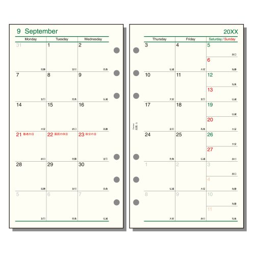 目にやさしいクリーム色が特長です ・月曜日~金曜日のスペースを広くとった平日重視型です。 見開き両面1ヶ月ブロック式・月曜始まり/平日重視 期間:2025年12月~2027年3月【検索ハッシュタグ】#日付品#26日付#レイメイ藤井#リフィル#日付リフィル