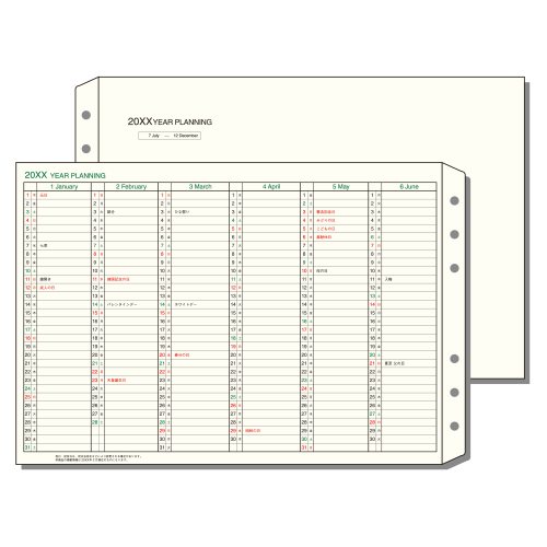 目にやさしいクリーム色が特長です ・長期的なプロジェクトの進行を管理する年間予定表です。半年ごとにプランを一覧できます。 ・2026年1月~6月:1枚、2026年7月~12月:1枚 期間:2026年1月~2027年12月 本体サイズ:251?170mm(3つ折時:92?170mm)【検索ハッシュタグ】#日付品#26日付#レイメイ藤井#リフィル#日付リフィル