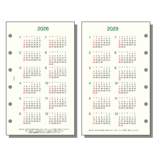目にやさしいクリーム色が特長です ・1ページ1年、2029年までの4年カレンダーです。 ・汚れ、破損を防ぐために1枚ずつ袋入 ・2026年~2027年1枚、2028年~2029年1枚 期間:2026年~2029年【検索ハッシュタグ】#日付品#26日付#レイメイ藤井#リフィル#日付リフィル