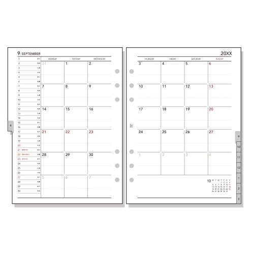 やや厚みのあるしっかりした紙を使用 ・見開き両面1ケ月ブロック式・月曜始まり/インデックス付 期間:2025年12月~2027年3月