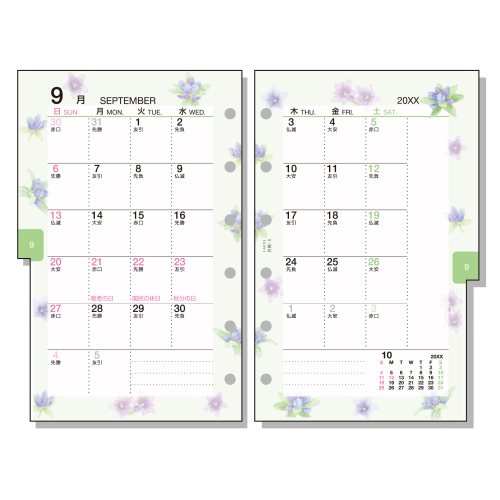 ・見開き両面1ケ月ブロック式・日曜始まり/カラーインデックス付 期間:2025年12月~2027年3月