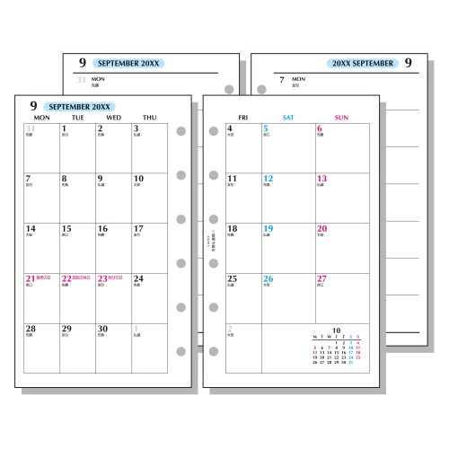 書き心地の良いタント紙を使用 ・見開き両面1ヶ月ブロック式・月曜始まり+見開き両面2週間 期間:2025年12月~2027年3月【検索ハッシュタグ】#日付品#26日付#レイメイ藤井#リフィル#日付リフィル