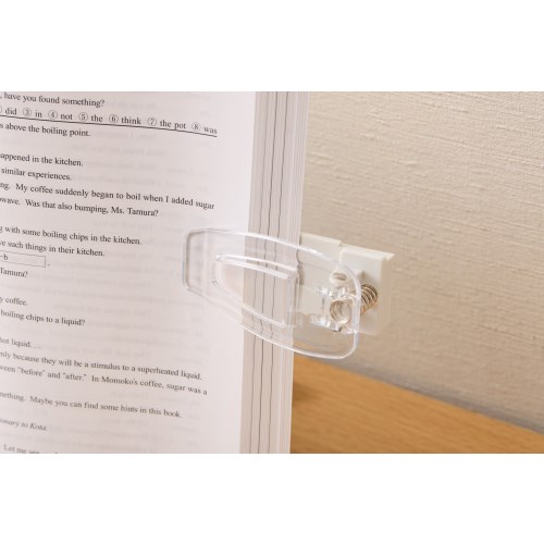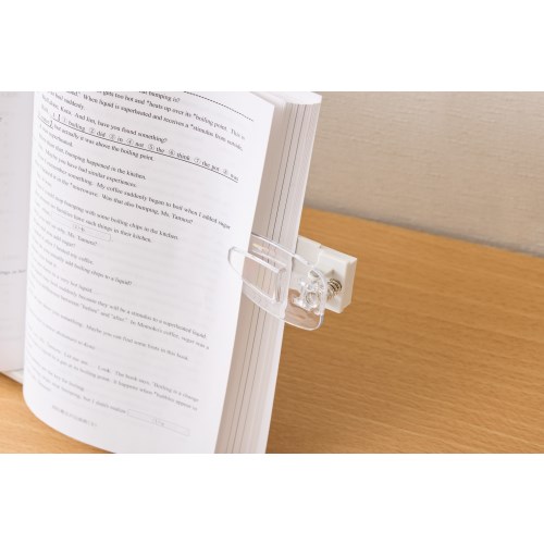 大きなクリップが特徴のタブレット対応の書見台です。大きくてクリアなクリップで分厚い本でもしっかり固定でき、透明なので文字も隠れず見やすくなっています。高さは15段階で調整可能です。クリップは2重になっていて、見たいページ範囲の中でページを固定できるようになっています。