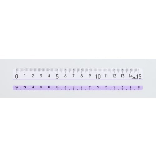 メモリの部分の色が変化する新感覚定規です。濃い色の上で長さを図りたい時に、大きい目盛側の下に色が出現することで同化して見づらかったメモリが見やすくなります。軽量なので負担が少なく、丸角なので安心安全な構造になっています。ルーラー中央部には読みたいところだけクリアに見える透明窓もあるので、教科書・本・資料などの文字や数字の読み取りに最適です。