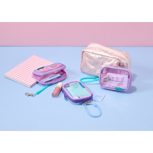 クリアで中が見えるパスケースです。マチ付きでポケットが大きく開くので小物の収納にも便利で、キーリングもあるのでキーホルダーや鍵を保管できます。