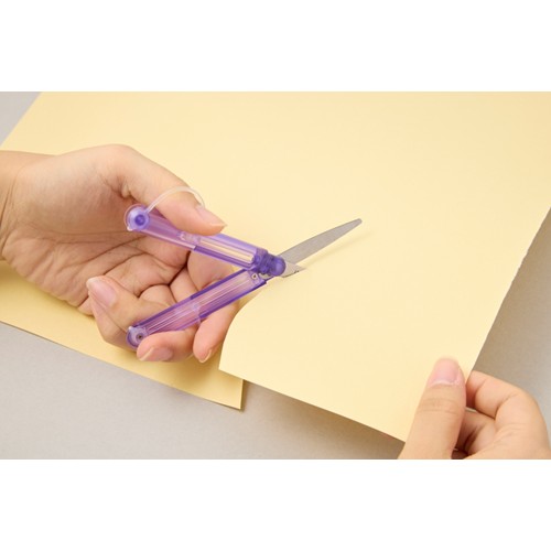ギミックが見えるレトロスケルトンカラーのペン型ハサミです。ペンカットからクリアカラーが登場しました。ハサミの持ち手側の端にある利き手切り替えレバーを左右に動かすだけで左右両利きに変換できます。指を入れるハンドループが程よく柔らかいことで、手にフィットして一般のハサミと同じような切れ味を実現しています。クリアになったことでハサミのギミックが見える面白さがあります。