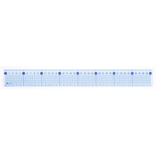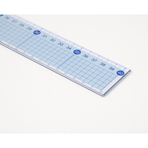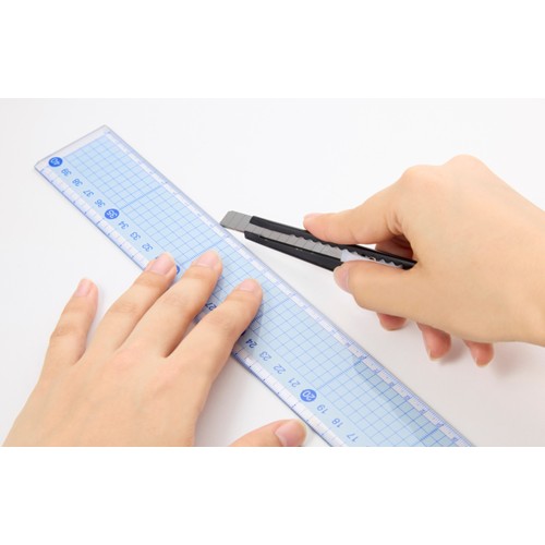 カッターでの作業時にも使えるすべらないカッティング定規です。定規の端にステンレス製の金棒をはめ込んでいるのでカッターでの作業時にも定規を傷つけることなくまっすぐカットできます。裏面にはスベリ止め特殊加工が施されていることでスライドのしやすさと滑りずらさという反対の機能を実現しました。定規で測る際には軽い力でスライドでき、カッターでカットする際に強く力をかけて抑えると動かなくなります。5cmごとに色塗りがされていることに加えて、目盛に矢印の記載があるので測る時に見やすくなっています。