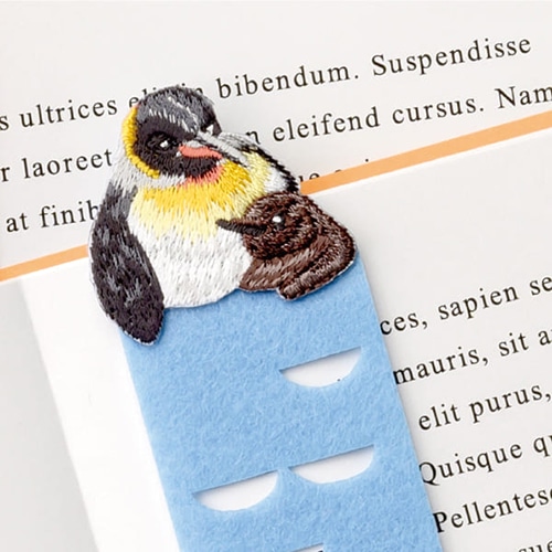 動物たちが本のページからのぞき見ているかわいいしおりです。動物園で人気のある動物たちの特徴のある毛並みや質感を、繊細な刺繍で丁寧に表現しました