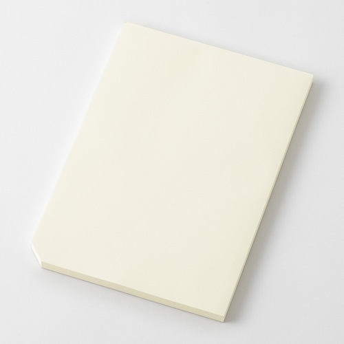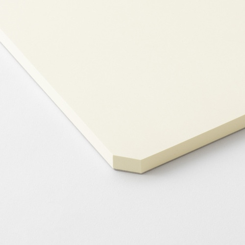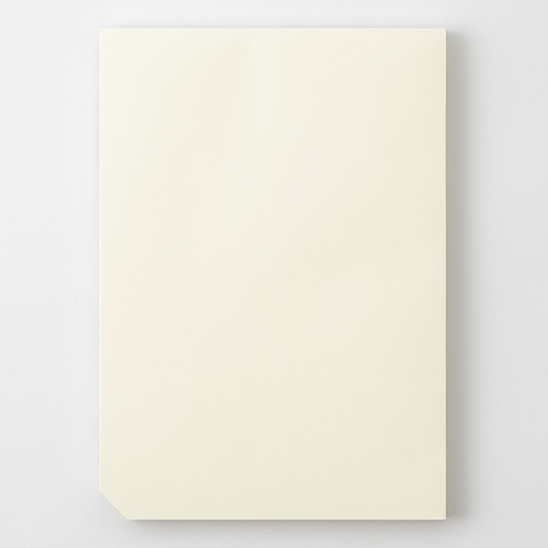 2辺を糊で留めているので安定感があり縦でも横でも書きやすい。めくりやすいように角をカット。自由な使い方を楽しめる「無罫」。