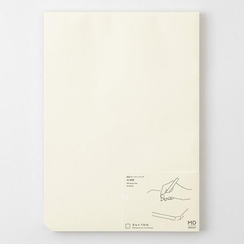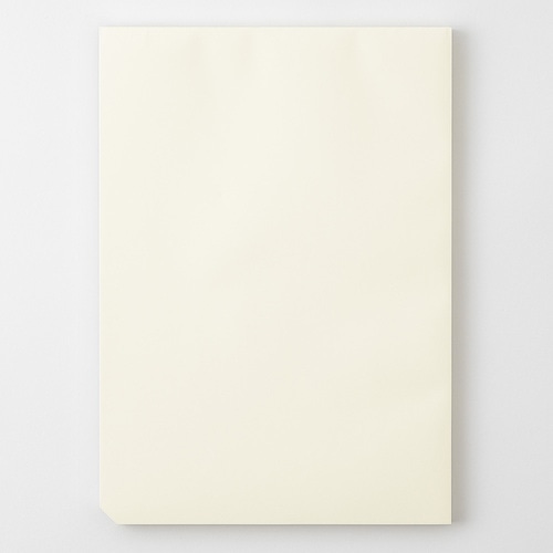 2辺を糊で留めているので安定感があり縦でも横でも書きやすい。めくりやすいように角をカット。自由な使い方を楽しめる「無罫」。