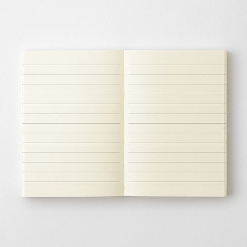 『MDノート』は、シンプルに「書く」を愉しむことを追求したノートです。 無垢な佇まいの奥に隠れているさまざまな工夫。 それを知れば、さらなる愛着をもっていただけるはずです。 180度フラットに開く製本と、装飾を排除した機能美の追求。 万年筆から鉛筆まで、さまざまな筆記具で心地よく書けるよう開発した「MD用紙」を使用しています。 本文だけでなく、表紙や見返しにも「MD用紙」を使用することで、書き心地を極めたノートです。 持ち運びに便利なA7 サイズ。 バッグや胸ポケットに忍ばせて、書きたいときにさっと取り出せるコンパクトさが魅力です。 横罫:上下で分けて使えるように中央の罫線が太くなっています。 2分割にしたり、見開きで4分割にして、メモや日記、日付を入れてスケジュール帳として使ったりと、いろいろなアレンジができるようになっています。 商品名:MD PRODUCT MDノート<A7> 横罫A 15373006【検索ハッシュタグ】#デザインフィル#designphil#midori#かわいい#おしゃれ#おすすめ#シンプル#大人#ダイアリー#記録#ライフログ#日記#手帳#デコ#学生#趣味#無垢#ナチュラル#アイボリー#罫線#メモ#しおり#仕事