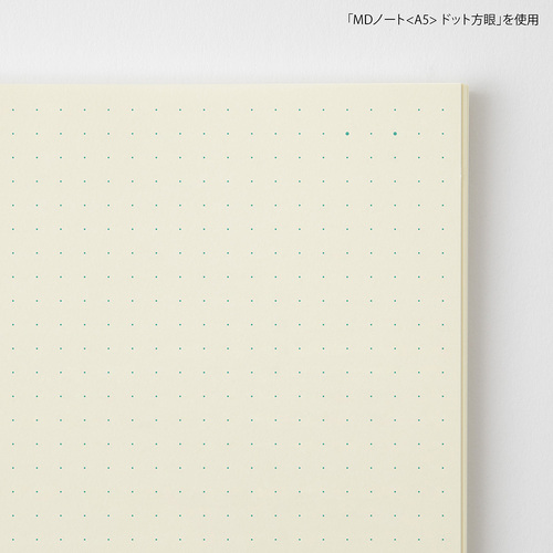 『MDノート』は、シンプルに「書く」を愉しむことを追求したノートです。 無垢な佇まいの奥に隠れているさまざまな工夫。 それを知れば、さらなる愛着をもっていただけるはずです。 180度フラットに開く製本と、装飾を排除した機能美の追求。 万年筆から鉛筆まで、さまざまな筆記具で心地よく書けるよう開発した「MD用紙」を使用しています。 本文だけでなく、表紙や見返しにも「MD用紙」を使用することで、書き心地を極めたノートです。 持ち運びに便利なA7 サイズ。 バッグや胸ポケットに忍ばせて、書きたいときにさっと取り出せるコンパクトさが魅力です。 ドット方眼:5ミリピッチのドット罫ノートは、文字や図の書き心地も満足させてくれます。 商品名:MD PRODUCT MDノート<A7> ドット方眼 15375006【検索ハッシュタグ】#デザインフィル#designphil#midori#かわいい#おしゃれ#おすすめ#シンプル#大人#ダイアリー#記録#ライフログ#日記#手帳#デコ#学生#趣味#無垢#ナチュラル#アイボリー#ドット#メモ#しおり#仕事