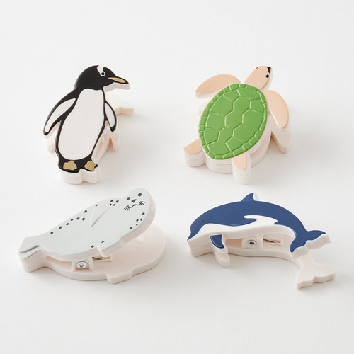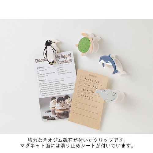 4種類のかわいい動物をアソートした、強力マグネット付きクリップです。