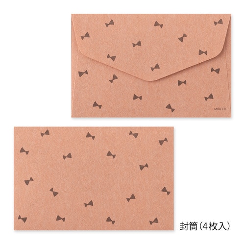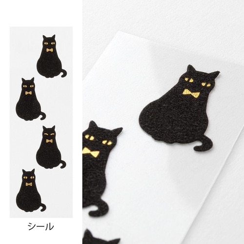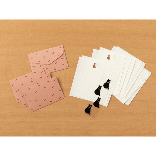 ふわっとした起毛素材の動物シールが付いたミニサイズのレターセットです。 ほどよい文量が書けるサイズなので、ちょっとしたお礼やお手紙など、日常の中で気軽にお使いいただけます。 ※郵送不可 黒猫柄:ちょこんと座ったポーズがかわいい、黒猫柄のシール。封筒は、黒猫の蝶ネクタイとお揃いのリボン模様です。 ・親しい友人へ、近況を伝えるフレンドリーな手紙として。 ・一緒に働く仕事仲間へ、借りていた本を返却するときに感想を少し添えて。 ・遠方に住む親戚へ、旅のお土産に添える手紙として。