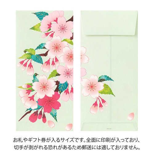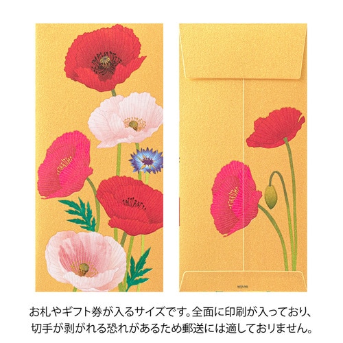 1000 年もの時を重ねてきた伝統素材の和紙を用いて、四季折々の花々を大胆な構図でデザインした季節の便りです。 少ない文字数でも美しく完成される紙面デザインは「紙シリーズ」ならでは。 やさしい肌合いの越前和紙「越前鳥の子」(白)を使用しています。 お札やギフト券が入るサイズの多目的に使用できる封筒です。 春の花々を華やかに彩ったデザインは、特別なシーンにもお使いただけます。 オフセット印刷とシルク印刷の2色(金、偏光パールインキ)を使い、大胆に全面にデザインをした多目的封筒です。 本製品は全面に印刷が入っており、切手が剥がれる恐れがあるため郵送には適しておりません。 1柄4枚入りです。【検索ハッシュタグ】#デザインフィル#designphil#midori#かわいい#可愛い#おしゃれ#オシャレ#おすすめ#シンプル#大人##無罫#花#手紙#お祝い#上品#季節#芸術#アート#紙シリーズ#春レター#和紙#便箋#封筒#植物