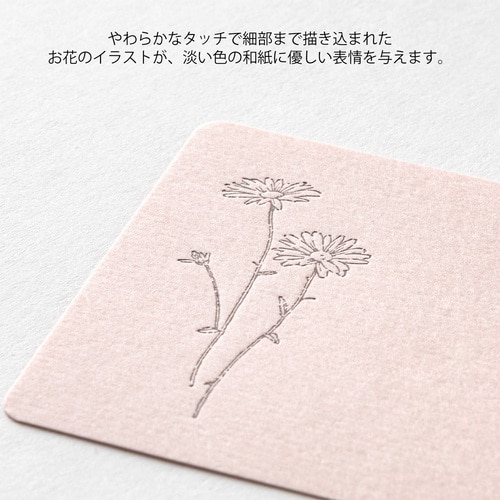 オリジナルで抄紙した先染めの越前和紙「DW花色和紙」で、ミニカードセットを作りました。 花が持つやわらかな色合いを大切に、思いを込めて作ったミニカードです。 ミニカードは書き心地にこだわり、活版印刷で趣のある仕上げにしました。 自社工場の職人が一枚一枚丁寧に印刷しており、繊細な花の絵柄が引き立つデザインです。 繊細な花の絵柄と和紙の色を生かした、ゆったりとしたレイアウト。 花が一輪添えられているようなデザインなので、一言書くだけで、すてきなメッセージギフトになります。 (ピンク)デイジー:陽の光に向かってゆったりと揺れる薄桃色を和紙にうつしました。 商品名:ミドリ カードセット名刺サイズ 花色和紙 ピンク 88789006【検索ハッシュタグ】#デザインフィル#designphil#midori#かわいい#可愛い#おしゃれ#お洒落#おすすめ#シンプル#大人#レター#手紙#便箋#メモ#上品#結婚式#高級感#横書き#縦書き#植物#花#活版#和紙#日本製#桃色