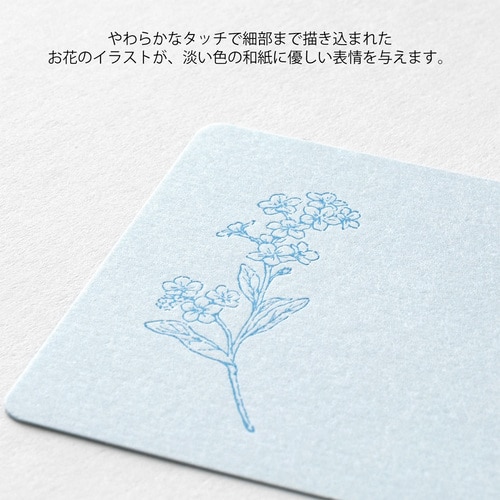オリジナルで抄紙した先染めの越前和紙「DW花色和紙」で、ミニカードセットを作りました。 花が持つやわらかな色合いを大切に、思いを込めて作ったミニカードです。 ミニカードは書き心地にこだわり、活版印刷で趣のある仕上げにしました。 自社工場の職人が一枚一枚丁寧に印刷しており、繊細な花の絵柄が引き立つデザインです。 繊細な花の絵柄と和紙の色を生かした、ゆったりとしたレイアウト。 花が一輪添えられているようなデザインなので、一言書くだけで、すてきなメッセージギフトになります。 (青)わすれな草:爽やかに透き通る空色を和紙にうつしました。 商品名:ミドリ カードセット名刺サイズ 花色和紙 青 88792006【検索ハッシュタグ】#デザインフィル#designphil#midori#かわいい#可愛い#おしゃれ#お洒落#おすすめ#シンプル#大人#レター#手紙#便箋#メモ#上品#結婚式#高級感#横書き#縦書き#植物#花#活版#和紙#日本製#上質#ブルー