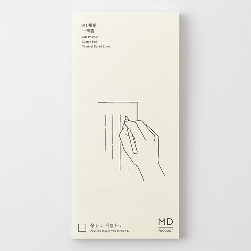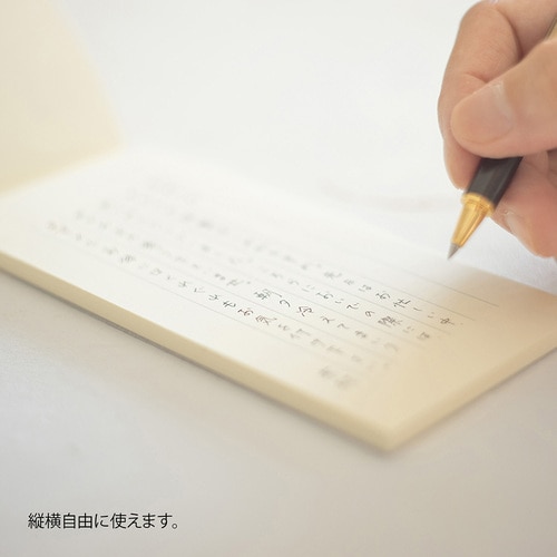 目に優しく、黒やブルーブラックのインクが映えるクリーム色の「MD用紙」を使用した一筆箋です。 「MD用紙」はにじみや裏抜けがしにくく、書き味の良さを追求し続けているオリジナルの筆記用紙です。 罫線色はやさしい色合いのグレーで、幅を広めにとった10mm罫なので、ゆったり余裕をもって書くことができます。 縦横自由にお使いいただけます。 手紙を書き終えたときに全体がすっきりと美しく見えるよう、周囲にも余白をたっぷりとったフォーマットです。 50枚入り。 縦罫5行(10mm幅)。