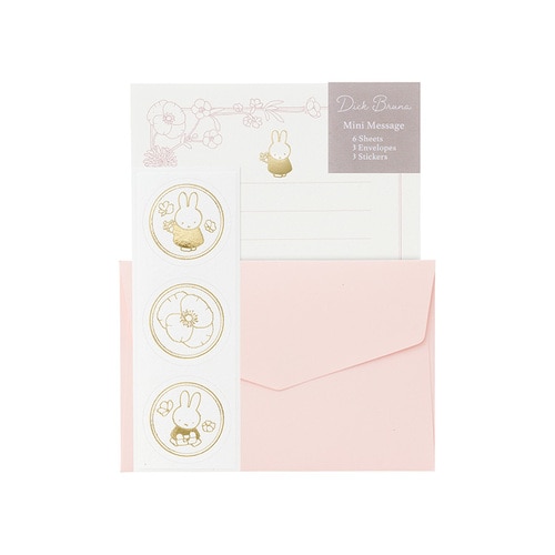 便箋と封緘シールにミッフィーの箔押しが施されたミニレターセットです。