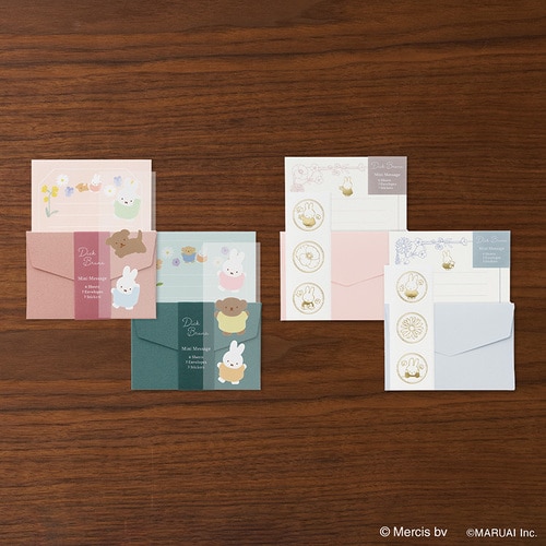 便箋と封緘シールにミッフィーの箔押しが施されたミニレターセットです。